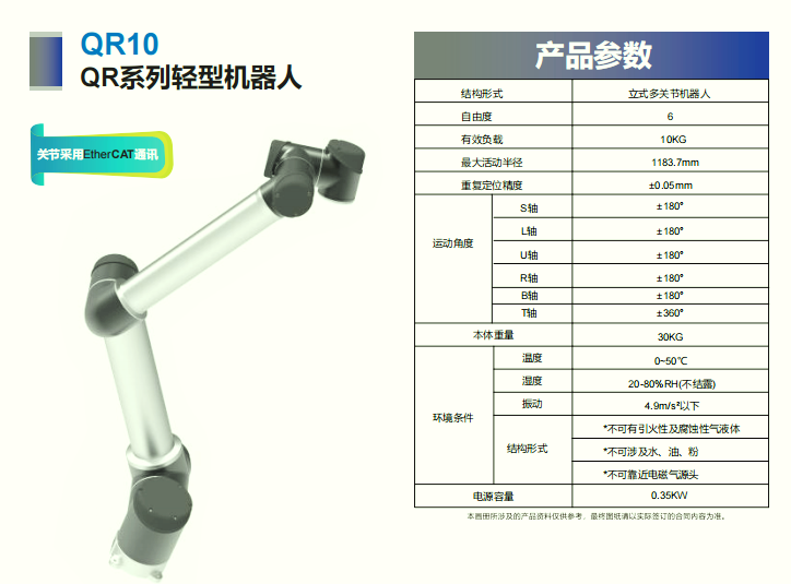 1、协作机器人在轻量化负载和运动范围上有着先天的优势,得益于关节模块化设计,小体积高度集成,且作业范围远超普通6关节机器人