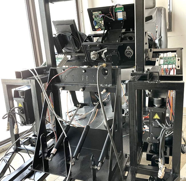 3、伺服电缸运动平台可模拟上下坡度角度,撞车,刹车以及熄火时候车身的真实震感